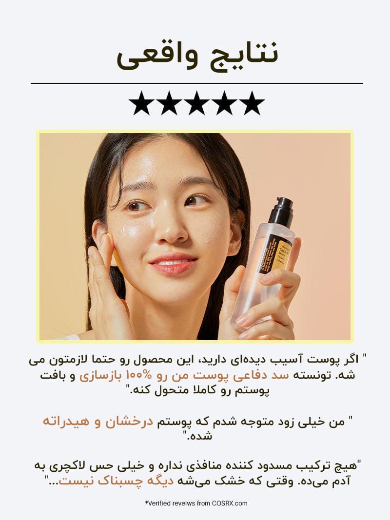 • برای جذب بهتر، میتوانید چند ثانیه به آرامی روی پوست ضربه بزنید. پس از جذب کامل آبرسان، میتوانید از کرم مرطوب کننده مناسب نوع پوستتان استفاده کنید تا رطوبت پوست حفظ شود. از تماس مستقیم اسنس با ناحیه دور چشم خودداری کنید. برای این ناحیه از محصولات مخصوص دور چشم استفاده کنید. برای مشاهده نتایج بهتر، اسنس حلزون را به صورت روزانه و در روتین صبح و شب خود مصرف کنید.