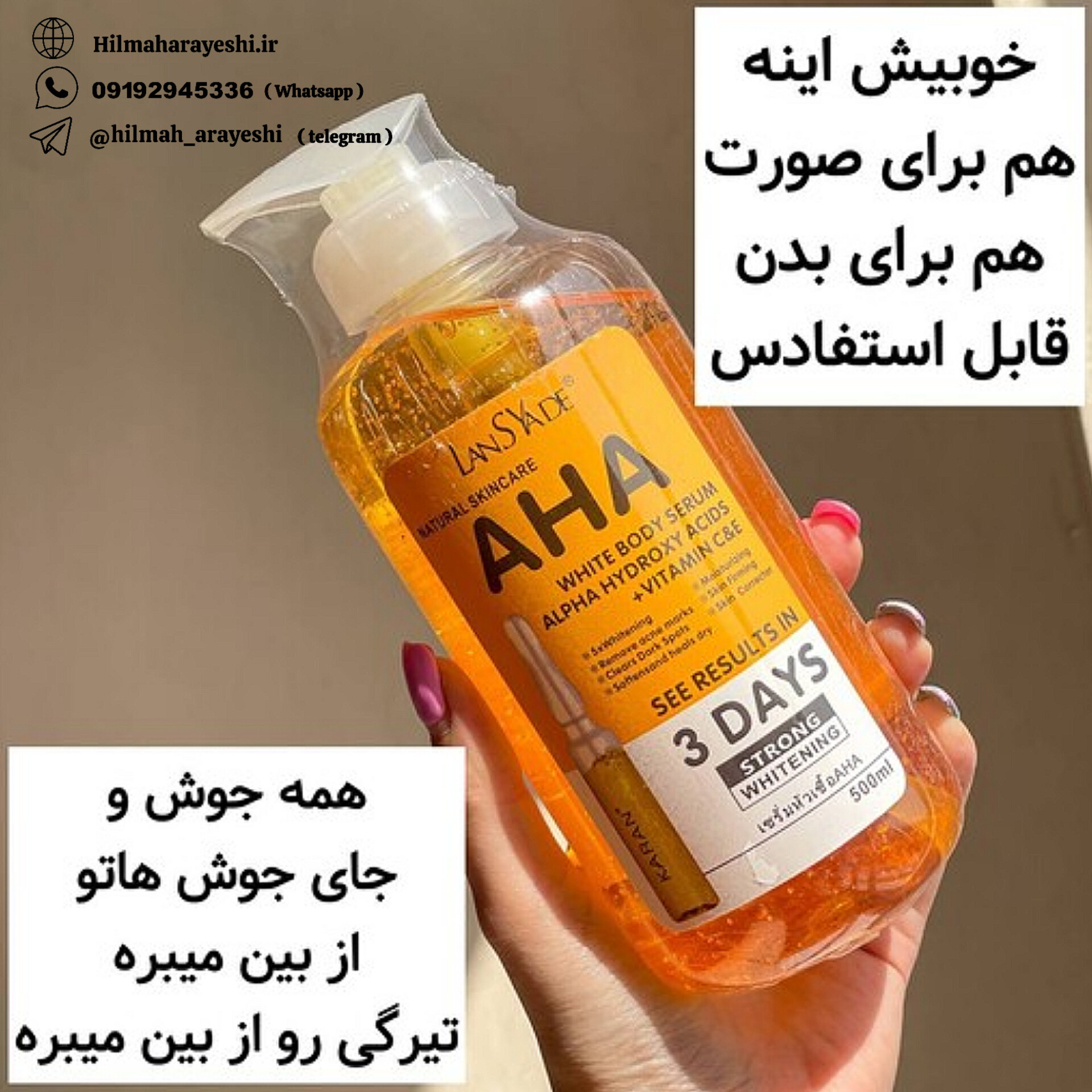 سرم سفید کننده و روشن کننده تخصصی بدن AHA لنسیاد 500 میل