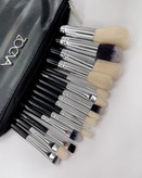 دارای ۱ کیف چرمی بزرگ ک علاوه بر براش ها چون بزرگ و جاداره لوازم ارایشتون هم داخلش قرار میگیره هم میتونید تر و تمیز هرجا خواستین براش هاتون رو ببرین مسافرت وهرجااا😍